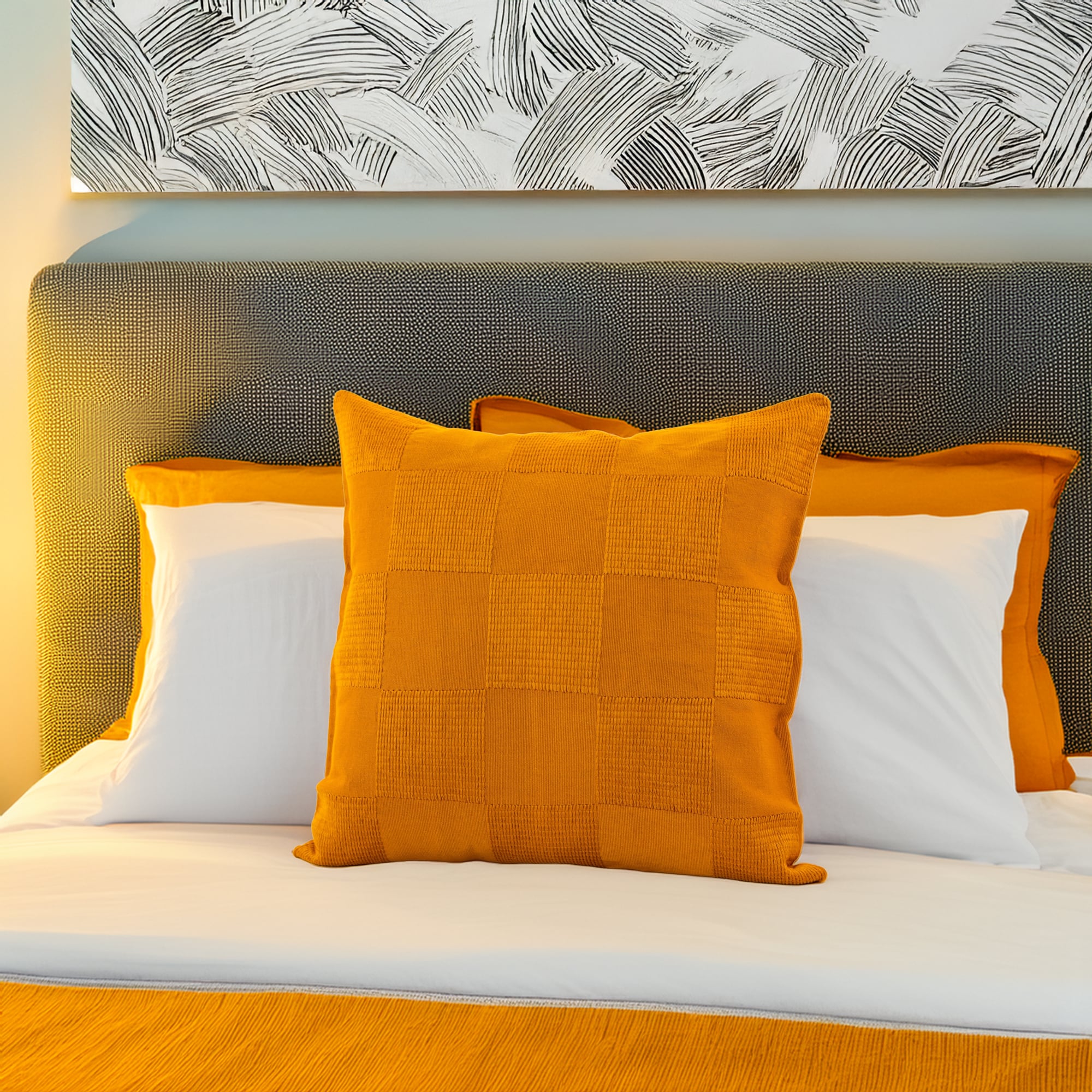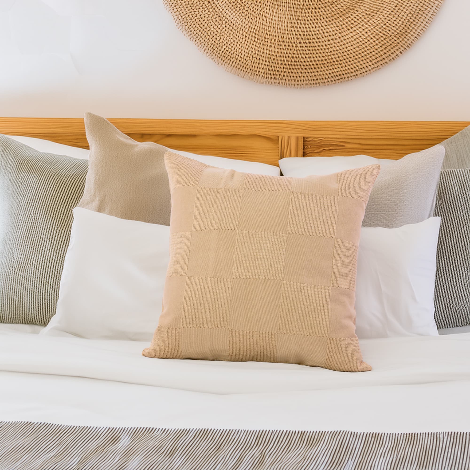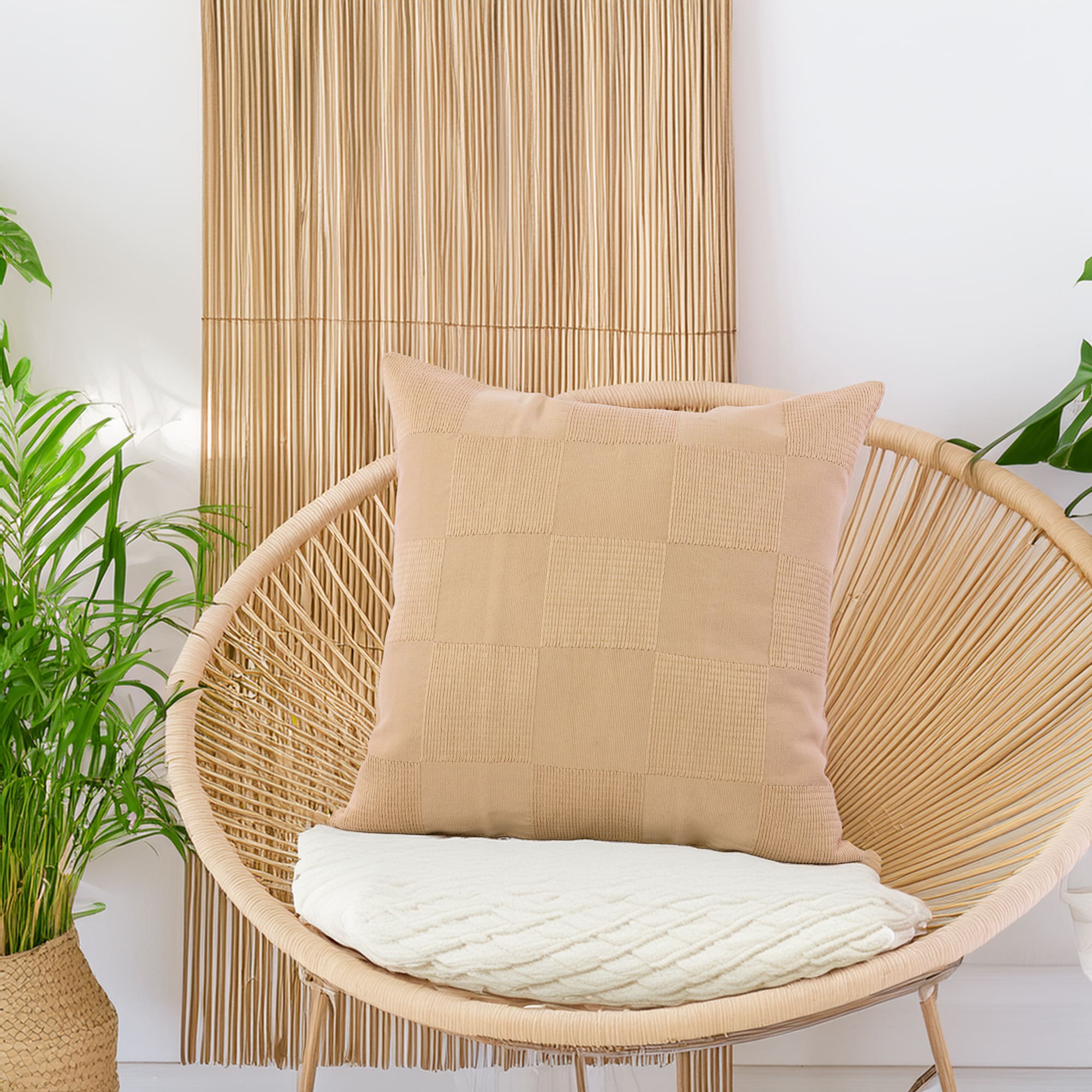 Inspired by the timeless appeal of a classic checkerboard, the Chess Pillow Cover blends detailed embroidery with smooth woven fabric for a sophisticated textural effect. Each pillow cover is hand-stitched by talented artisans in Mexico, turning every square into a testament of skill, care, and quality. Available in vibrant and versatile shades—such as soft lavender, sunny yellow, earthy tan, deep black, warm olive, and bold ochre—these covers elevate spaces through sustainable style and authentic artisan beauty.