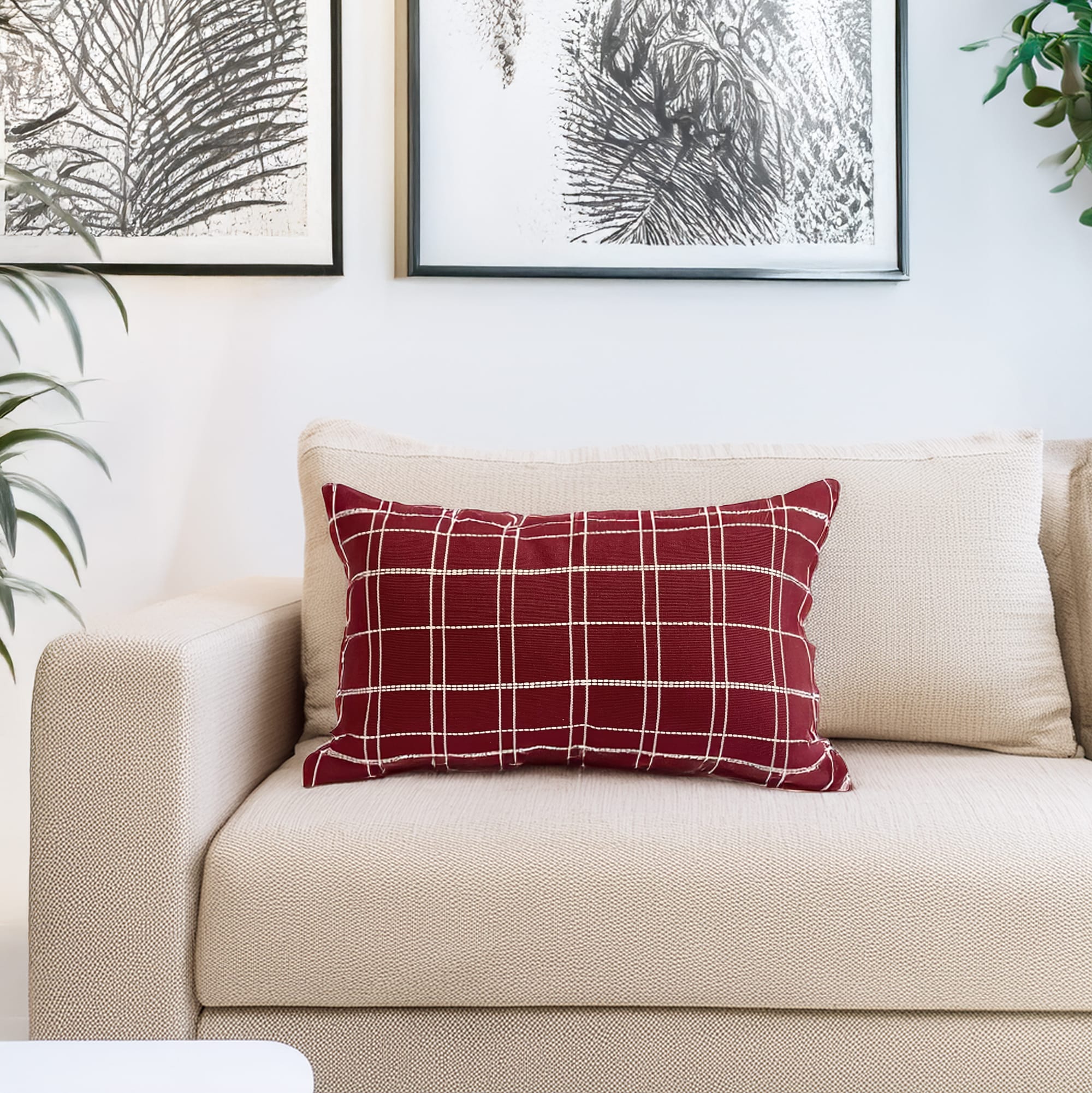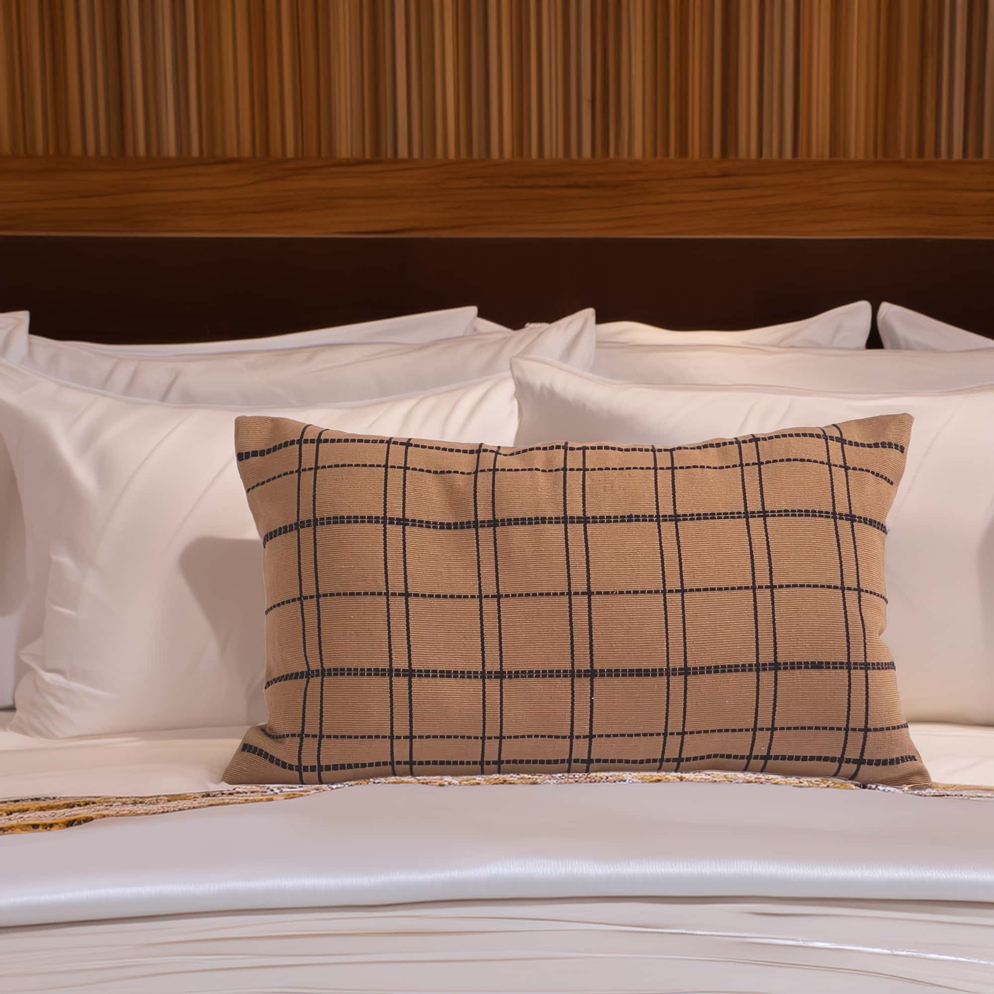 The Grid Lumbar Pillow Cover merges precise embroidered lines with the warmth and personality of handwoven textiles. Artisans from Chiapas and the Yucatán Peninsula carefully craft each pillow, creating structured patterns with an organic feel that beautifully complements modern interiors. Offered in inviting shades of deep burgundy, rich tan, and timeless black, these covers offer an understated yet stylish way to bring ethical luxury into your home.