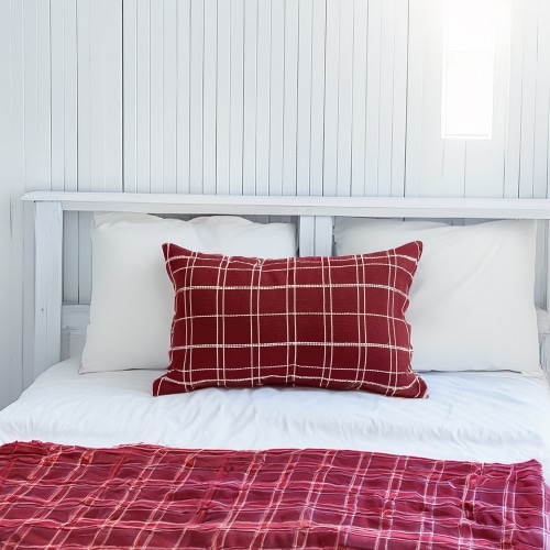 The Grid Lumbar Pillow Cover merges precise embroidered lines with the warmth and personality of handwoven textiles. Artisans from Chiapas and the Yucatán Peninsula carefully craft each pillow, creating structured patterns with an organic feel that beautifully complements modern interiors. Offered in inviting shades of deep burgundy, rich tan, and timeless black, these covers offer an understated yet stylish way to bring ethical luxury into your home.