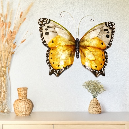 Our Monarch Butterfly Wall Decor is perfect for any space that needs a touch of graceful elegance. For centuries, butterflies have held an abundance of cultural significance in cultures around the globe. The Monarch butterfly is a particularly iconic species, renowned for its eye-catching orange wings and long migration patterns across continents each year. With our beautifully crafted, capiz oyster shell adorned wall decor, you can add a subtle yet stunning backdrop that celebrates nature and its timeless beauty. Our Monarch was designed with soothing hues, soft edges, and graceful lines to bring equilibrium wherever it hangs, making a wonderful addition to any room in your home. Enhance your living space with this Monarchy Butterfly Wall Decor for serenity that’s sure to captivate anyone who steps inside.
