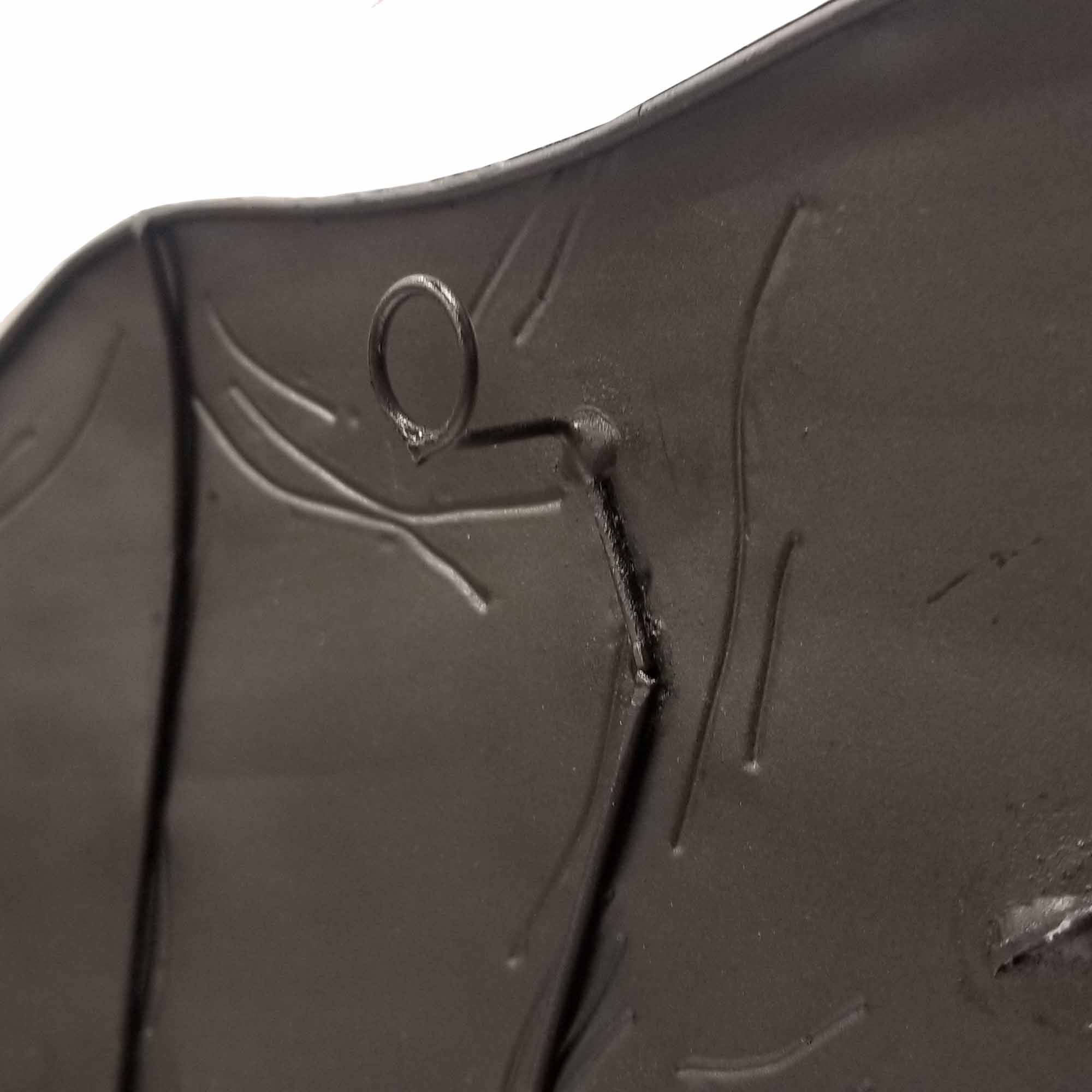 The basic frame of the is created using tin, which is powder coated with a black finish. The frame is reinforced using tin wire along the inner edge. Capiz is an oyster shell and the primary purpose of the oyster is as a source of food. However, the by-product, the shell, can be used for decoration. Due to it being a natural material, the natural colors of the capiz come through as tans and browns underneath the paint. The shell is then painted the bold colors you see. The entire front facing piece is carefully hand-painted.