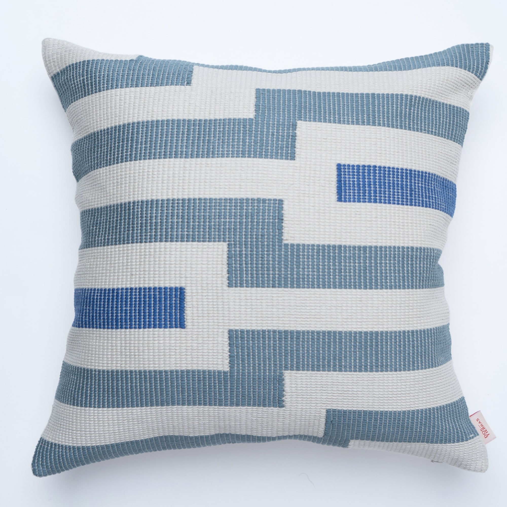 Handcrafted in CANCUC, CHIAPAS using the traditional backstrap loom woven technique, this 18″ X 18″ pillow cover, featuring plumbago blue, pearl, greyish blue hues, takes approximately 10.0 hours to produce, preserving the rich cultural heritage of Chiapas while bringing texture and character to your home.